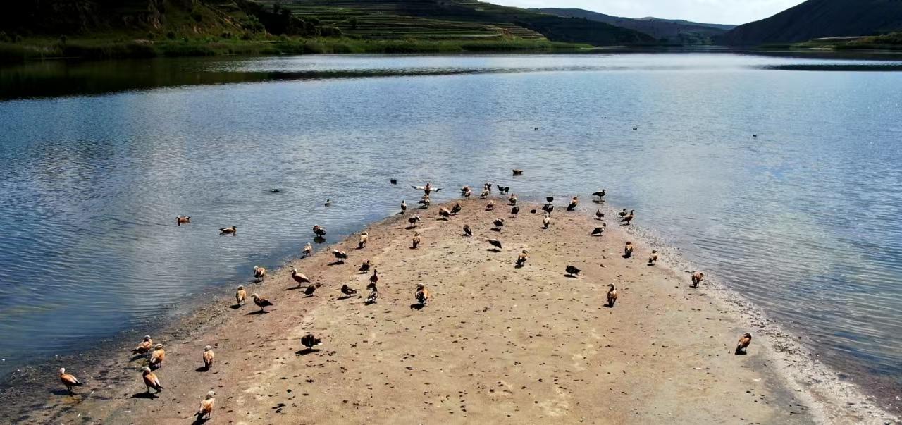 深秋時(shí)分,黨家岔堰塞湖旁高高的山峁上北風(fēng)凜冽,西吉縣黨家岔濕地自然保護(hù)區(qū)管理人員馬世學(xué)站在上面遠(yuǎn)眺,黨家岔的水面像一面巨大的鏡子,將上空的烏云和飛鳥(niǎo)全部“裝”了進(jìn)去。
