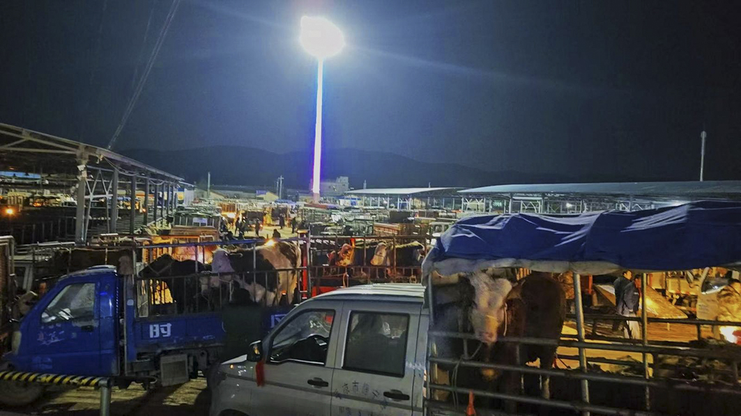 夜色下的西吉縣興隆鎮(zhèn)單家集活畜交易市場。