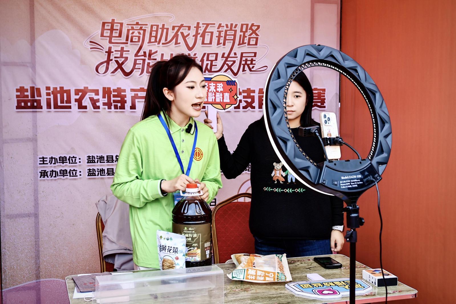 9月27日,在吳忠市2025年“中國農(nóng)民豐收節(jié)”暨鹽池灘羊美食文化旅游系列活動的主會場,一場別開生面的農(nóng)特產(chǎn)品電商技能大賽總決賽正如火如荼地進(jìn)行。30名參賽主播在鏡頭前各展所長,將鹽池的羔羊羊蝎子、黃花菜、亞麻籽油等特色農(nóng)產(chǎn)品賣到全國各地。