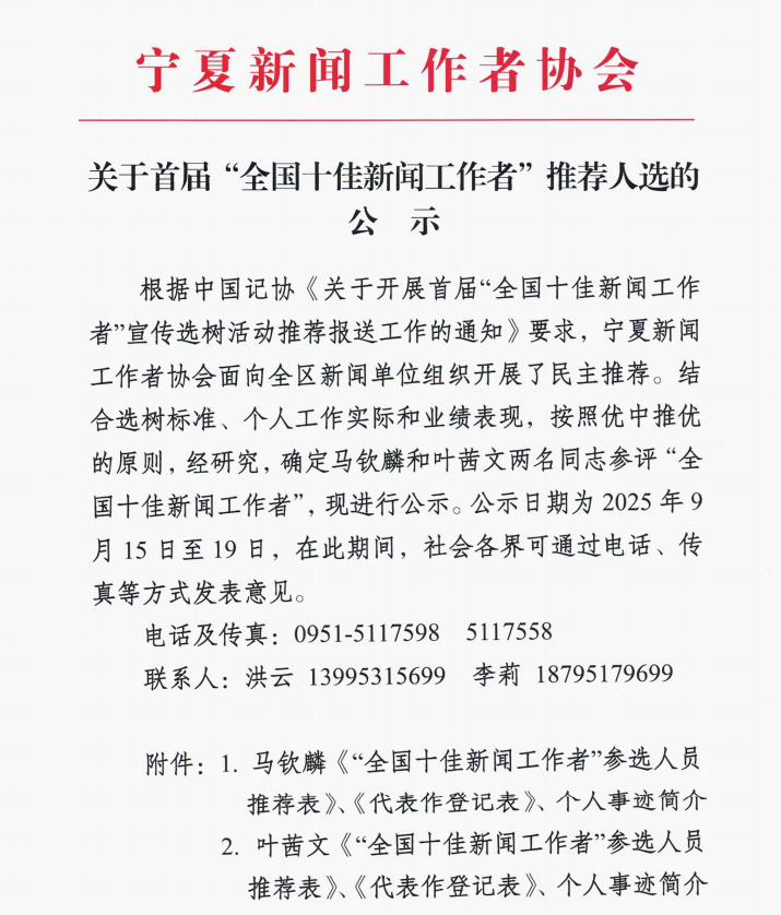 關(guān)于首屆“全國十佳新聞工作者”推薦人選的公示