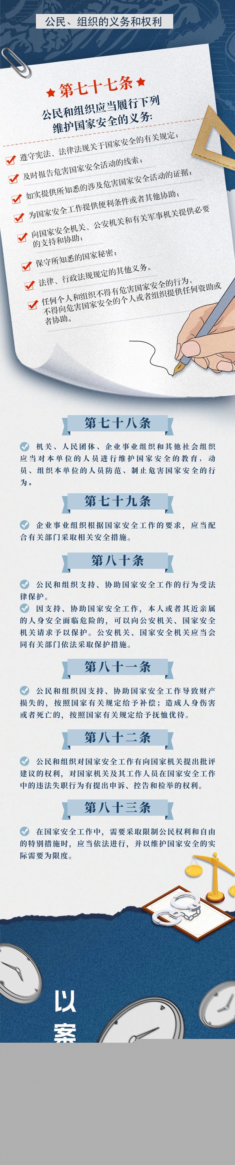 今年是《中華人民共和國(guó)國(guó)家安全法》頒布實(shí)施10周年。2015年7月1日,第十二屆全國(guó)人民代表大會(huì)常務(wù)委員會(huì)第十五次會(huì)議審議通過(guò)新的《中華人民共和國(guó)國(guó)家安全法》。十年來(lái),該法有力保障了總體國(guó)家安全觀貫徹落實(shí),有力促進(jìn)了國(guó)家安全體系和能力現(xiàn)代化。下面,讓我們一同回顧該法主要內(nèi)容,共同增強(qiáng)國(guó)家安全意識(shí),凝聚起全社會(huì)維護(hù)國(guó)家安全的強(qiáng)大合力。