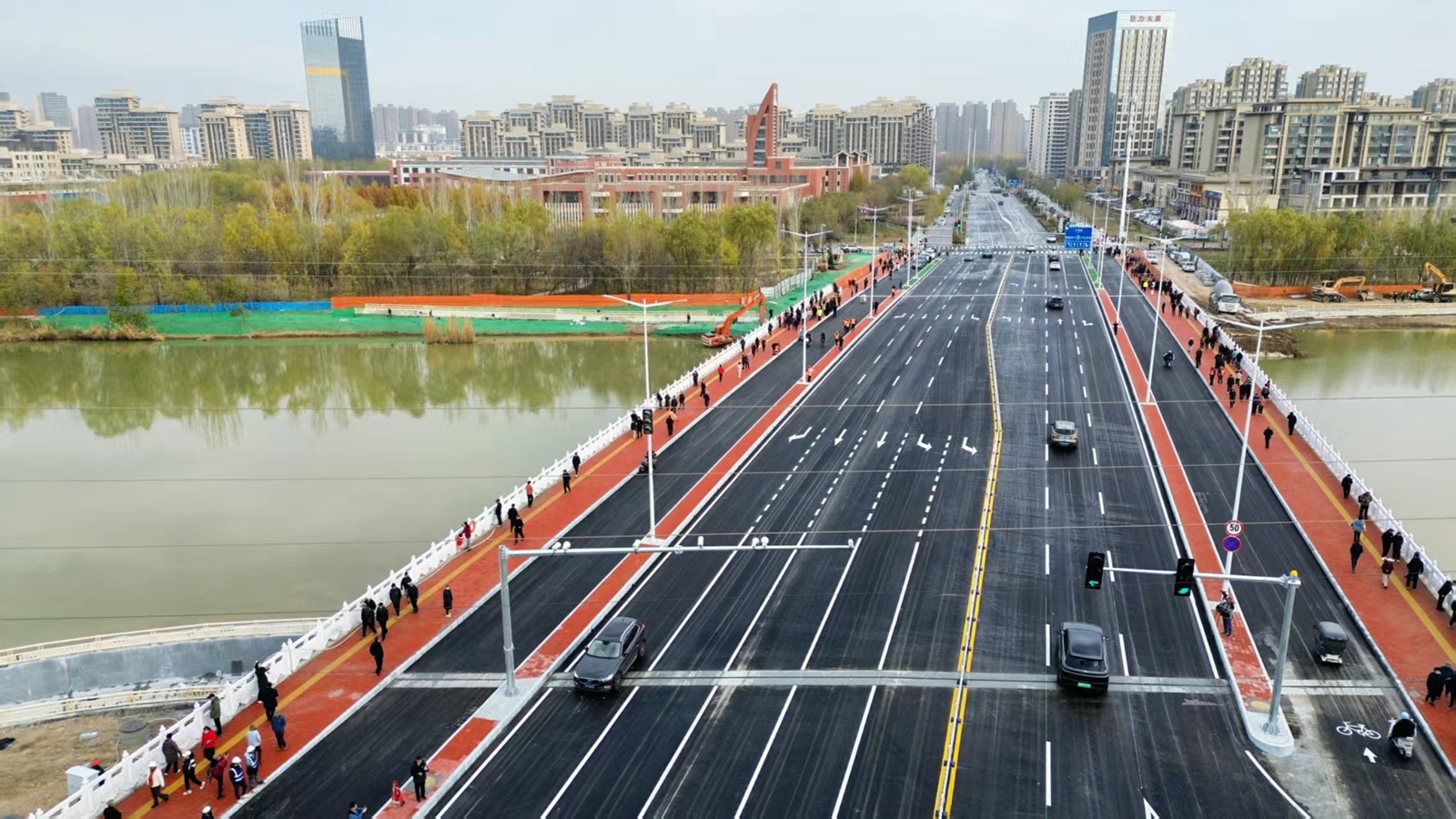 寧夏新聞網(wǎng)訊(記者 胡俊)連續(xù)奮戰(zhàn)80個日夜,11月15日,由寧夏公路橋梁建設(shè)有限公司承建的銀川市天平街道路及橋梁工程(上海路-濱河路)項目(天平橋)正式通車。