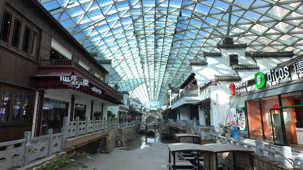 “我們項目的核心亮點便是創(chuàng)新打造了銀川首個配備全景天窗的室內(nèi)江南水街主題場景,建筑面積約1.4萬平方米,定位為城市級文商旅娛購體驗中心,通過規(guī)劃主題場景,將江南徽派園林美學(xué)與西北地域特色融合,讓市民實現(xiàn)‘不出西北,盡覽江南’的體驗?!绷⑦_(dá)融樂匯總經(jīng)理蘇小梅說。