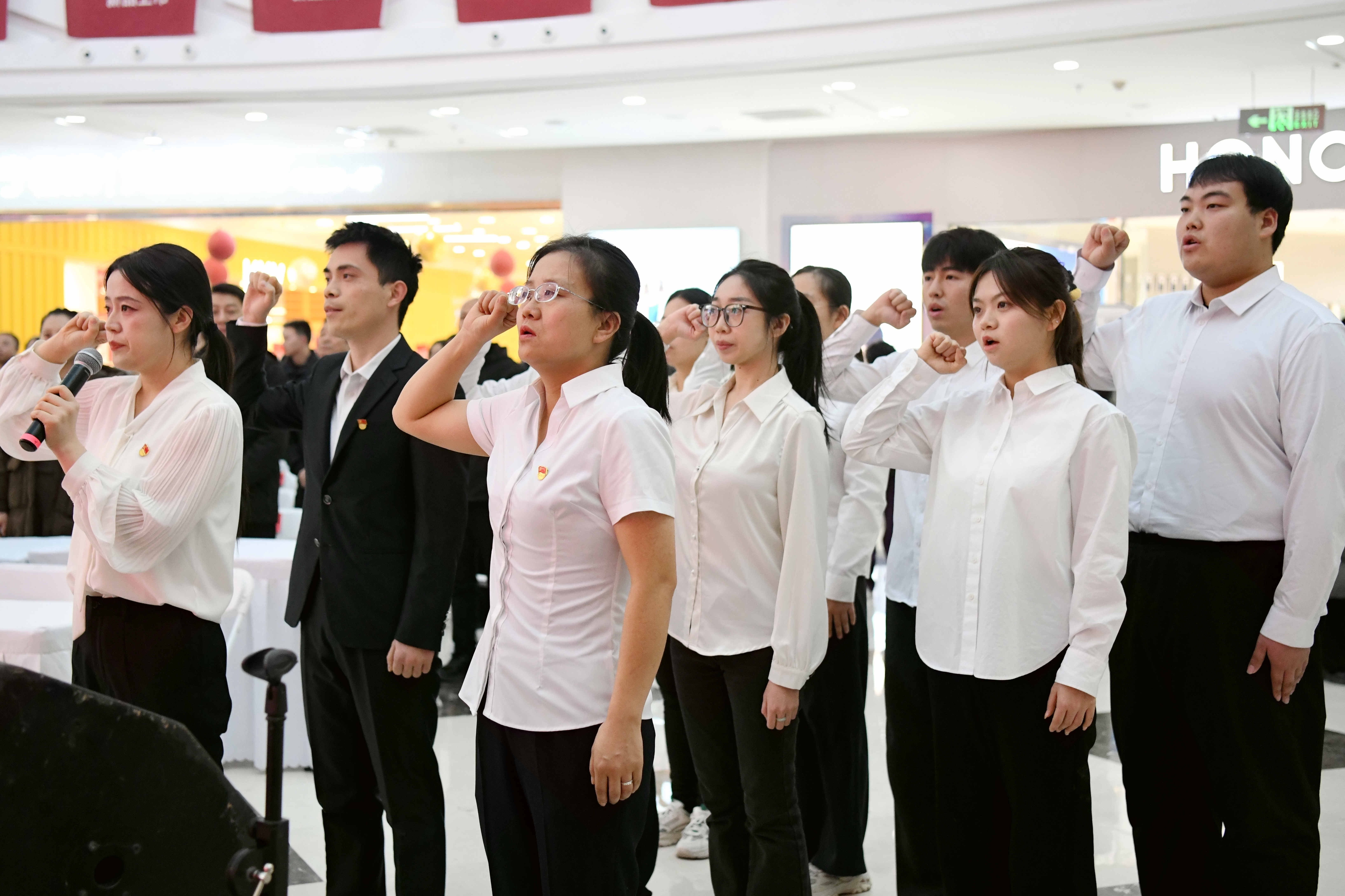 活動現(xiàn)場舉行了莊重的憲法宣誓儀式。在2024年選調(diào)生代表馮萱領(lǐng)誓下,金鳳區(qū)2025年新錄用國家工作人員面向國旗,高舉右拳莊嚴宣誓:“我宣誓,忠于《中華人民共和國憲法》,維護憲法權(quán)威,履行法定職責……”鏗鏘誓言展現(xiàn)了新時代公職人員忠于憲法、依法履職、服務人民的堅定信念。