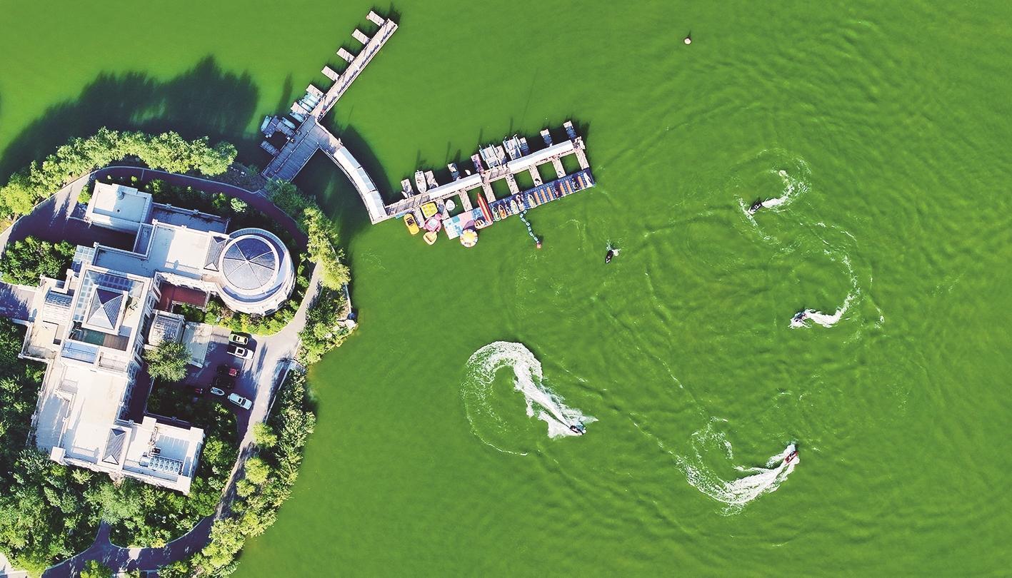 快艇在閱海湖里風(fēng)馳電掣,似靈動(dòng)游龍穿梭于湖光山色間。