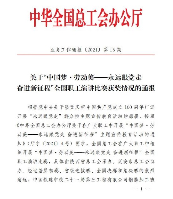 日前,全總發(fā)文對“中國夢·勞動美——永遠跟黨走 奮進新征程”全國職工演講比賽獲獎情況進行通報,由自治區(qū)總工會選送的兩名一線職工榮獲優(yōu)秀獎。