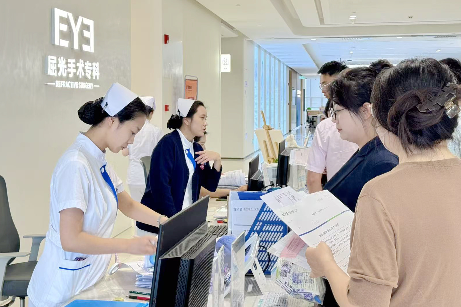 盡管就診人數(shù)增加了很多,寧夏愛(ài)爾眼科醫(yī)院各科室就診流程依然順暢有序。在屈光科的導(dǎo)診臺(tái),預(yù)約信息核驗(yàn)、術(shù)前檢查、手術(shù)安排、術(shù)后宣教等環(huán)節(jié)緊密相扣。護(hù)士團(tuán)隊(duì)與醫(yī)護(hù)人員配合默契,處處體現(xiàn)著規(guī)范化管理和以患者為中心的服務(wù)理念。