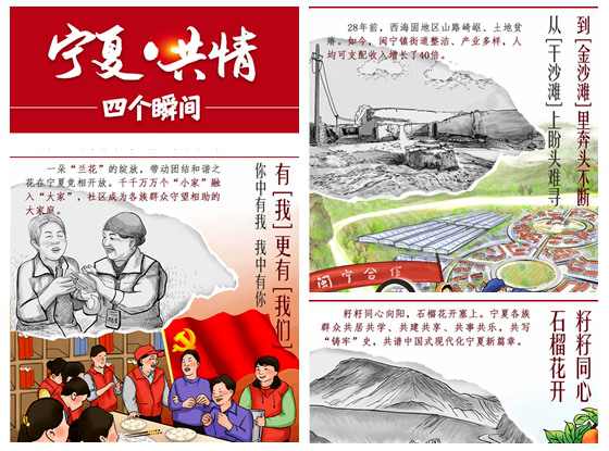 寧夏全面推進中華民族共有精神家園建設 10月10日,記者從寧夏高質(zhì)量完成“十四五”規(guī)劃系列主題新聞發(fā)布會(第二場)了解到,“十四五”時期,寧夏把鑄牢中華民族共同體意識作為各項工作的主線,推進示范區(qū)創(chuàng)建及“六大建設”等邁出新步伐。 原州織女一針一線掇繡鄉(xiāng)土新意 9月19日,由自治區(qū)黨委網(wǎng)信辦、統(tǒng)戰(zhàn)部主辦的“石榴花開籽籽同心”網(wǎng)絡主題活動采訪團走進固原市原州區(qū)的寧夏思含掇繡文化創(chuàng)新發(fā)展有限公司,探訪“非遺+電商+鄉(xiāng)村振興”的融合發(fā)展模式。與其他傳統(tǒng)刺繡相比,掇繡的繡法獨特、繡線粗密,刺繡時繡針與布面垂直,像小雞啄米,輕墩布面,因此掇繡厚重、鮮艷、飽滿,立體感強。高廣娟是思含掇繡的另一位“掌門人”,也是劉飛的妻... 守望鄰里情 共筑幸福家 近年來,我區(qū)緊緊圍繞鑄牢中華民族共同體意識工作主線,加強黨的領導,織牢精神紐帶,用好治理平臺,構(gòu)建互嵌式社區(qū)環(huán)境,促進各民族群眾共居共學、共建共享、共事共樂。從10人志愿小隊到700多人的隊伍,從零散幫扶到體系化服務,這些都印證著:民族團結(jié)的種子,蘊于教跳舞的交流里、送食物的暖意中、解難題的堅持間,凝聚成共筑家園的堅實力量,籽籽同心,共繪民族團結(jié)進步... 幸福社區(qū)的4404份幸福答卷 9月17日,由自治區(qū)黨委網(wǎng)信辦、統(tǒng)戰(zhàn)部主辦的“石榴花開籽籽同心”網(wǎng)絡主題活動采訪團走進海原幸福社區(qū)。這個由會議室改造的書法課堂,已成為各族居民開展文化活動的樂園。書院針對不同群體量身定制課程:少年班學楷書打基礎,成人班練隸書強功底,老年班習行書養(yǎng)心性。春節(jié)的“民族服飾秀”上, 136名各族婦女身著盛裝,展示刺繡、剪紙等技藝。端午節(jié)的“粽藝比拼”中,漢族... 隆德縣楊家店村:“紅綠融合”繪就鄉(xiāng)村新圖景 9月19日,由自治區(qū)黨委網(wǎng)信辦、統(tǒng)戰(zhàn)部主辦的“石榴花開籽籽同心”網(wǎng)絡主題活動采訪團走進隆德縣城關鎮(zhèn)楊家店村,探訪這座緊鄰六盤山紅軍長征旅游區(qū)的自治區(qū)級文明村鎮(zhèn),感受紅色文化與綠色產(chǎn)業(yè)交融發(fā)展帶來的鄉(xiāng)村振興新氣象?!蹦壳埃摯逡黄?、二期改造工程已完工,一座座灰瓦土墻的土木結(jié)構(gòu)民宿古樸莊重,既保留了窯洞、拱木房等傳統(tǒng)風貌,又融入了現(xiàn)代舒適設施,成為游客... 西吉縣火集村:“聯(lián)產(chǎn)單干”蹚出村民共富路 9月18日,由自治區(qū)黨委網(wǎng)信辦、統(tǒng)戰(zhàn)部主辦的“石榴花開 籽籽同心”網(wǎng)絡主題活動采訪團走進固原市西吉縣將臺堡鎮(zhèn)火集村,探訪“聯(lián)產(chǎn)單干”農(nóng)業(yè)生產(chǎn)經(jīng)營新模式如何蹚出群眾共富路。 怕沙 治沙 用沙 愛沙——中衛(wèi)人對待沙漠的感情變化 有著35年治沙經(jīng)歷的中衛(wèi)市國有林業(yè)總場正高級工程師唐希明,堪稱沙坡頭治沙歷史的“活字典”。他用“怕沙、治沙、用沙、愛沙”概括70年來中衛(wèi)人民對沙漠的感情變化。 小飯碗盛滿大溫情 “張叔,今天的羊肉燉得好,您多吃點!”9月11日中午,吳忠市紅寺堡區(qū)新民街道“一家親”社區(qū)食堂里,工作人員正忙著給前來就餐的老人盛飯。食堂內(nèi),各族老人圍坐在餐桌前,邊吃邊嘮。這樣溫馨的場景,每天都在上演。 “石榴花開 籽籽同心”網(wǎng)絡主題活動啟動 9月16日,由自治區(qū)黨委網(wǎng)信辦、統(tǒng)戰(zhàn)部主辦,寧夏日報報業(yè)集團新消息報社承辦的“石榴花開 籽籽同心”網(wǎng)絡主題活動在銀川啟動。來自中央及內(nèi)蒙古、新疆、廣西、西藏和福建等地的20家媒體記者與網(wǎng)絡達人組成采訪團,將深入自治區(qū)五市基層一線,用鏡頭和筆觸記錄寧夏努力創(chuàng)建鑄牢中華民族共同體意識示范區(qū)的生動實踐。 互嵌式社區(qū)的“共生密碼” 9月9日,在銀川市金鳳區(qū)長城花園社區(qū)黨群服務中心內(nèi),剪紙、拉二胡、跳舞,老人們各得其樂,一幅民族團結(jié)的和諧畫卷徐徐展開。這個擁有8632戶18326人的社區(qū)中,少數(shù)民族居民達6963人,占比38%。如何讓這么多民族親 如一家?長城花園社區(qū)用實踐給出了答案。 香園村:從物質(zhì)“富口袋”到文化“富腦袋” “梆子響,秦腔亮,各族鄉(xiāng)親聚一堂!”9月9日,吳忠市紅寺堡區(qū)香園村文化大院里熱鬧非凡,板胡聲、唱腔聲交織在一起,各族群眾圍坐在戲臺前,跟著經(jīng)典唱段輕輕哼唱,其樂融融?!懊糠甏汗?jié)、元宵節(jié),耍獅子、扭秧歌、寫書法,咱們各族兄弟在一起歡聲笑語,比走親戚還熱鬧!”文化名人郭銳放下板胡,笑著說起村里的文化趣事。 融媒 公益大集進社區(qū) 共繪團結(jié)同心圓 山高水長歌聲遠 銀川公安:籽籽同心一家親 警民共繪新“楓”景 黃河岸邊是故鄉(xiāng)!賀蘭縣為云貴川務工者慶?;鸢压?jié) 時政鏡距離 | 共奏一曲團結(jié)歌 手繪連環(huán)畫?|?寧夏共情的四個瞬間