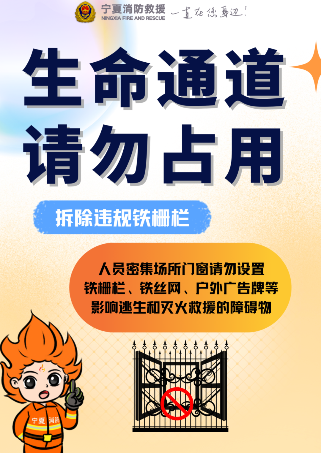 嚴禁在門窗設置影響逃生和滅火救援的鐵柵欄、鐵絲網(wǎng)等障礙物。已在門窗上設置影響逃生和滅火救援的障礙物的,應當主動拆除。